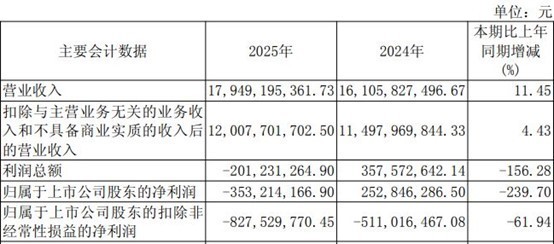 三安光电(SH600703,股价15.11元,市值754亿元)4月24日晚间发布2025年年报,公司2025年实现营收179.49亿元,同比增长11.45%;实现归属于上市公司股东的净利润为-3.53亿元,较2024年净利润2.53亿元由盈转亏;实现扣非净利润约-8.28亿元,较2024年5.11亿元的亏损同比扩大。公司2025年度拟不派发现金红利、不送红股、不以资本公积转增股本。