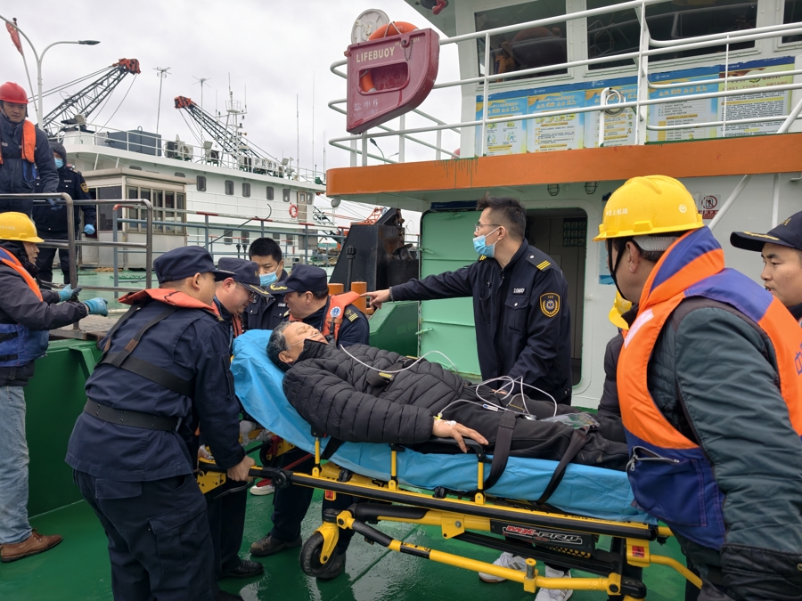 应急船艇抵达后,执法人员协助医护将患者转移至艇上,做好保暖及情绪安抚工作。12时30分,“盐申6”轮顺利抵达长横渡长兴侧码头,执法人员协助医护人员将心梗患者迅速转移至等候的救护车上。交接完毕,他们顾不上休息,立即返回岗位,继续坚守春运一线。